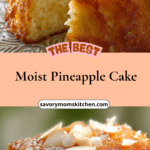 This moist pineapple cake is a soft, tender dessert bursting with sweet tropical flavor. Made with crushed pineapple and simple pantry ingredients, it delivers a perfectly balanced sweetness and a melt-in-your-mouth texture that stays moist for days.