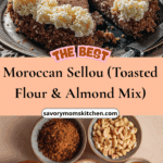 Moroccan Sellou (Sfouf) is a rich, spiced no-bake dessert made from toasted flour, roasted nuts, sesame seeds, honey, and butter. Traditionally served during celebrations like Eid and after childbirth, it’s deeply nourishing and aromatic.