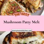 This Mushroom Patty Melt is a comforting, diner-style sandwich made completely meatless without sacrificing flavor. Roasted portobello mushrooms are marinated in a garlicky balsamic-soy blend, layered with sweet caramelized onions and melty Swiss cheese, then grilled between crispy slices of rye bread. It’s hearty, savory, and deeply satisfying.
