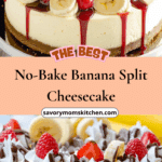 A creamy, fruity, refreshing no-bake dessert inspired by the classic banana split, this cheesecake is layered with fresh fruit, velvety filling, and a buttery graham crust. It’s simple to prepare and perfect for warm-weather gatherings or anytime you want an impressive dessert without turning on the oven.