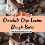 Indulgent no-bake chocolate chip cookie dough bars featuring a soft, egg-free dough base and a smooth chocolate topping. Quick to prepare and easy to slice, these bars deliver all the nostalgic cookie dough flavor with zero baking required.