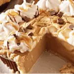 This pie combines the comforting flavor of creamy peanut butter with the satisfying crunch of chocolate chips and peanut butter cups. It’s simple to prepare, requires minimal baking, and makes a crowd-pleasing dessert for any occasion. The texture is creamy yet light thanks to whipped topping, and the crust adds a subtle sweetness and crunch.