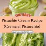 This homemade pistachio cream (Crema al Pistacchio) is a rich, smooth spread made from real pistachios, milk, white chocolate, and butter. Perfect as a filling, spread, or dessert topping, it’s a versatile and indulgent treat with pure pistachio flavor.