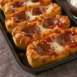 Crispy baked baguette halves filled with savory tomato sauce, melted cheese, and customizable toppings, inspired by classic Italian comfort food.