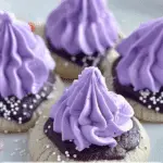I love how simple yet eye-catching these cookies are. They come together quickly, require no chilling time, and the ingredients are pantry staples I usually already have. The purple color is customizable depending on how bold I want it, and the Hershey’s Kiss on top adds a nostalgic chocolatey finish. Plus, they’re great to make with kids — especially the decorating part!