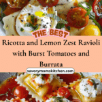 This Ricotta and Lemon Zest Ravioli with Burst Tomatoes and Burrata is a vibrant, elegant meal that blends fresh citrus, creamy cheese, and juicy tomatoes. Whether you’re preparing a cozy dinner or impressing guests, this dish offers a beautiful balance of simplicity and sophistication. Enjoy crafting it from scratch or adapting it to your taste—either way, it’s a truly satisfying plate of pasta.