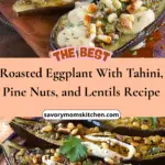 Roasted eggplant with tahini, pine nuts, and lentils is a nourishing, flavor-packed meal that proves plant-based cooking can be both comforting and elegant. With its contrasting textures and bold yet balanced flavors, it’s a recipe worth returning to again and again.