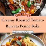 You’ll love this roasted tomato burrata pasta because it’s both simple and elegant. The combination of juicy roasted tomatoes, aromatic garlic, and smooth burrata creates an incredible flavor balance—fresh, savory, and creamy all at once. It’s a one-pan wonder with minimal cleanup, and the entire meal comes together in under an hour. This recipe is also versatile and can be adapted with different pasta shapes or herbs based on what you have at home.