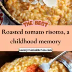 Roasting is what makes the sauce taste sweet, concentrated, and complex. If you’re short on time, you can use tomato passata and still get a comforting risotto.