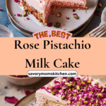 This Rose and Pistachio Milk Cake is a light sponge soaked in rose-scented milk, topped with whipped cream, pistachios, and dried rose petals. Inspired by tres leches with a Middle Eastern twist, it’s fragrant, elegant, and perfect for celebrations.