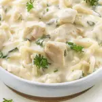 This recipe is quick, satisfying, and incredibly easy to prepare. Using rotisserie chicken saves time while still delivering a hearty, protein-rich meal. The Alfredo sauce is smooth, cheesy, and full of flavor, made from simple pantry staples. It’s also versatile, allowing you to customize it with vegetables or different pasta types. Perfect for family dinners, it’s a reliable go-to when you need something delicious fast.