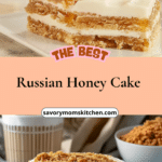 Russian honey cake is a rewarding project that delivers bakery-level results at home: delicate honey layers, a lightly tangy cream frosting, and a crumb-coated finish that looks as impressive as it tastes. Give it the full overnight chill, and you’ll be rewarded with a cake that slices beautifully and gets even better with time.