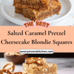 Salted Caramel Pretzel Blondies combine chewy brown sugar blondies with crunchy pretzels and rich caramel sauce for the perfect sweet-salty dessert. Easy to make in under 30 minutes, they’re ideal for parties or indulgent snacks.