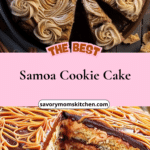 This Samoa Cookie Cake combines a soft and chewy chocolate chip cookie base with gooey caramel, toasted coconut, and a rich chocolate drizzle. Inspired by the classic Girl Scout cookie, it is a decadent, shareable dessert perfect for any celebration.