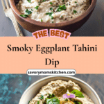 This smoky eggplant tahini dip is a creamy, rich, and flavorful dip made with roasted eggplant, tahini, lemon, and spices. It’s a plant-based appetizer perfect for snacking or entertaining.