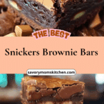 These Snickers Brownie Bars feature layers of fudgy brownie, fluffy peanut nougat, gooey caramel with roasted peanuts, and a smooth chocolate–peanut butter topping. They’re rich, decadent, and taste just like a homemade candy bar.
