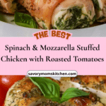 This recipe combines classic Italian-inspired flavors in a healthy and satisfying way. The chicken stays tender and juicy, while the melted mozzarella and wilted spinach create a delicious, savory filling in every bite. Roasted Roma tomatoes add natural sweetness and depth, balancing the richness of the cheese.