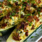 - Freezing: You can assemble the zucchini boats (hollowed and filled), wrap tightly, and freeze before baking. When ready, bake directly from frozen — you may need to add ~5–7 extra minutes to the bake time.
