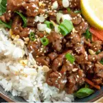 Sticky Ginger Beef and Rice Bowls combine savory ground beef glazed in a ginger-soy sauce with fluffy jasmine rice, crisp vegetables, and a creamy soy mayo drizzle. This quick and satisfying recipe delivers bold, takeout-style flavor at home.