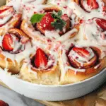 Soft, fluffy cinnamon rolls filled with sweet strawberry jam and fresh strawberries, then finished with a creamy cheesecake-style glaze. These rolls combine the comforting warmth of a classic cinnamon roll with the bright, fruity flavor of strawberry cheesecake, making them perfect for brunch, holidays, or a cozy weekend treat. Strawberry Cheesecake Cinnamon Rolls