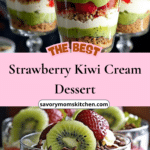 This strawberry kiwi cream dessert is a refreshing, layered treat that combines sweet fruits, airy whipped cream, and a light crunch from crushed biscuits. It’s a no-bake dessert that looks beautiful in a glass and tastes even better, making it perfect for warm days or when you want something quick yet impressive.