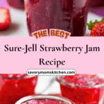 A bright and fresh homemade strawberry jam made with Sure Jell for a perfectly smooth, spreadable texture and vibrant fruit flavor.