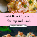 Creamy and flavorful sushi bake cups made with seasoned rice, shrimp, and crab, baked into perfectly portioned bites with a savory and slightly spicy topping.