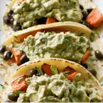 These Sweet Potato & Black Bean Tacos feature caramelized roasted sweet potatoes, spiced mashed black beans, and a creamy avocado-pepita dip—all wrapped in warm tortillas. A vibrant, hearty, and satisfying plant-based meal that’s vegetarian, easily vegan, and gluten-free with the right tortillas.