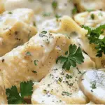 This tender chicken and mushrooms in a creamy pasta sauce brings together simple ingredients in a deeply satisfying way. With juicy chicken, flavorful mushrooms, and a sauce that clings perfectly to your chosen pasta, it’s an ideal choice for a comforting dinner that doesn’t require hours in the kitchen. Enjoy!