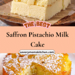 Saffron Milk Cake is a golden, aromatic dessert featuring a light and airy sponge soaked in a saffron-infused milk mixture, topped with saffron whipped cream and pistachios. This elegant, make-ahead cake is perfect for special occasions or gatherings.