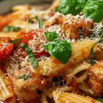 This tomatoes and pasta dish is one of my go-to meals when I want something quick, filling, and full of flavor. I like how the sausage, vegetables, and creamy Parmesan sauce come together in just one pan. It’s versatile enough to adjust to my taste, and it always leaves me satisfied.