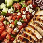 Tzatziki Chicken Bowls with Cucumber Salad are a Mediterranean-inspired meal featuring yogurt-marinated chicken, creamy homemade tzatziki, crisp cucumber-avocado salad, and fluffy rice. It’s a wholesome, protein-rich dish perfect for meal prep or weeknight dinners.