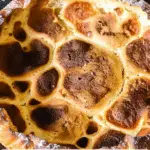 4. Assemble the pudding: Once the puff pastry has cooled slightly, break it into bite-sized pieces and arrange them in a 9×13-inch baking dish.
