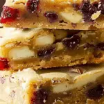 These white chocolate cranberry blondies are chewy, sweet, and tangy all at once. I love the soft blondie base filled with tart cranberries and chunks of creamy white chocolate, all topped with a luscious cream cheese frosting, more cranberries, and a drizzle of melted chocolate. They’re a festive treat that works beautifully for holidays, parties, or even as a make-ahead dessert.