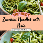 I toss the zucchini noodles with the pesto until well coated. If I’m using tomatoes, I add them on top. I serve it chilled, at room temperature, or lightly sautéed for 1–2 minutes to warm it up without making the noodles soggy.